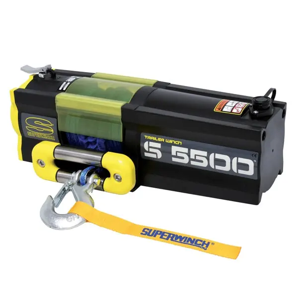 The S5500 Winch continues Superwinch’s dominance as the leader in trailer-specific winching. The S5500 trailer winch easily pulls 5,500 lbs powered by its 3.6 hp permanent magnet motor, and its all steel 3-stage planetary gear box. The S5500 includes a safety tinted protective cover which protects the cable, drum and operators fingers. The machined aluminum free-spool lever can also be operated easily by foot.