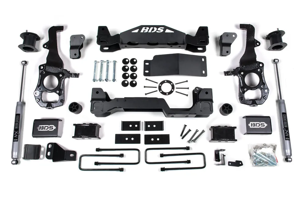 BDS steps up the performance and capability of the 2021-2025 Ford F150 trucks with 4-inch suspension lift kits. Designed to improve stance, performance, and capability, this kit includes everything necessary to set your truck up right with clearance for up to 35″ tires.