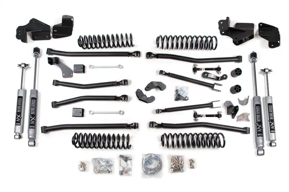 Maximize the capability of your 2007-2018 Jeep Wrangler 2 Door with this 4-inch lift kit with long arm conversion from BDS Suspension. Designed to improve stance this kit includes everything necessary to set your truck up right with clearance for up to 37″ tires. This 4-inch lift kit system improves on the factory 4-link with a redesigned 4-link long arm to improve articulation and offer better control throughout wheel travel.