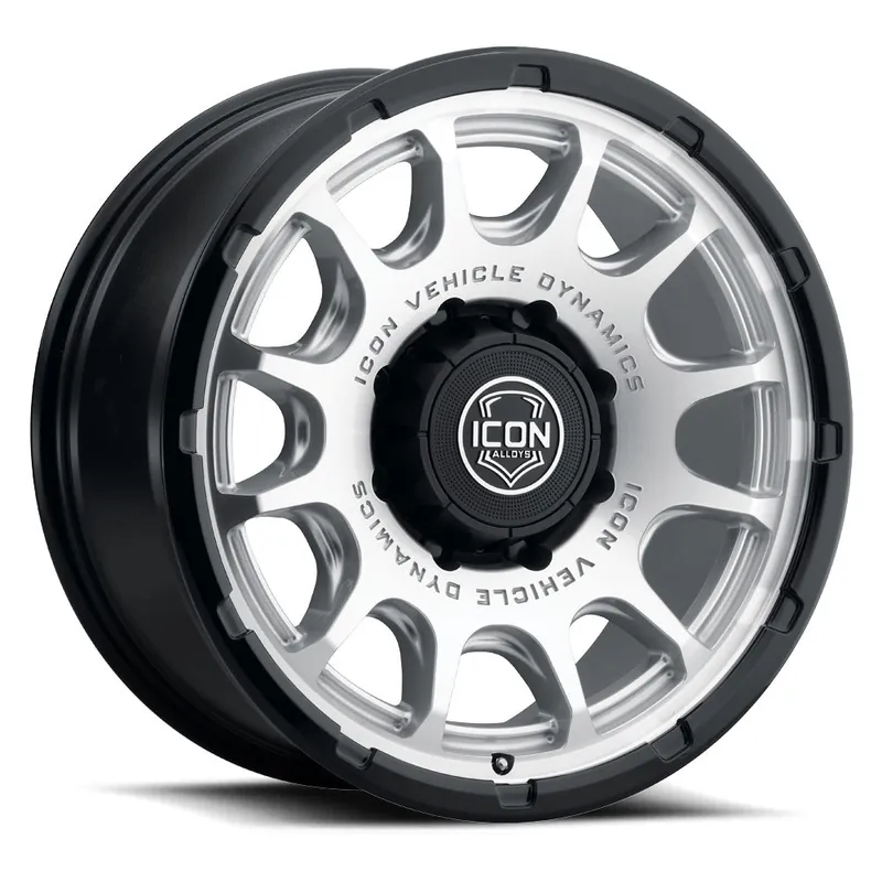While Supplies Last ICON Alloys Rancho, Silver Machined w/ Gloss Black Lip, 20 x 9 / 8 x 170, 6mm Offset, 5.25″ BS
